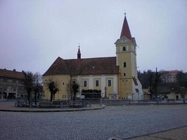 Farní a poutní kostel sv. Vavřince byl založen goticky a jeho přesné stáří není známo. Kostel byl během staletí několikrát přestavován a doplňován. Okolí roku 1691 se hovoří o výstavbě chrámové lodi. Po požáru roku 1716 byl kostel opravován, ke zvýšení věže došlo roku v roce 1898. Věž patří, spolu s gotickým presbytářem k nejstarším a nejzajímavějším částem kostela. Věž měla původně být součástí městského opevnění a kostelní se stala až po prodloužení chrámové lodi a faktickém spojením s kostelem. Proto také věž nestojí v ose kostela. Křtitelnice z cetechovického mramoru pochází z počátku 18. století. Autorem obrazů sv. Antonína Paduánského a sv. Františka Xaverského je patrně velehradský Ignác Raab. Barokní mobiliář kostela pochází vesměs z 3. čtvrtiny 18. století. Význačná je především socha Panny Marie, umístěná z záhlaví hlavního oltáře kostela. Tato řezbová plastika je mnohem starší, pochází z doby rozkvětu gotiky a je zmiňovaná již ve 14. století. Původně pochází z hradu Beckova na Slovensku, koryčanskému kostelu byla darována Annou Bánffyovou roku 1570. Při vpádu Turků byla přemístěna do hradní kaple na Cimburku a roku 1638 byla znovu přenesena do koryčanského chrámu. Socha byla od dávných dob ctěna věřícími jako zázračná, a proto byl koryčanský kostel častým cílem mnohých poutníků nejen z Moravy, ale i ze Slovenska (pouť 8. září).