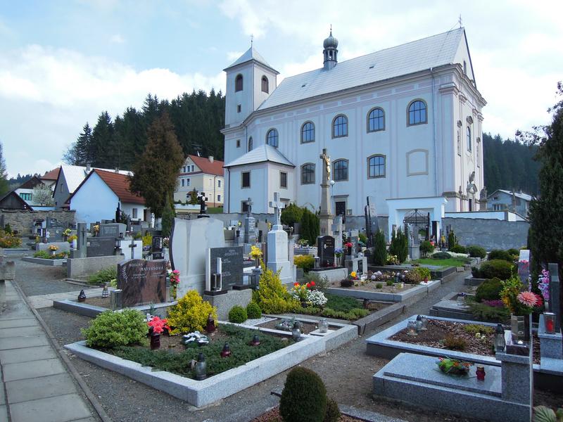 U kostela se nachází hřbitov s kamennou pietou Panny Marie, držící na klíně bezvládné tělo Krista. Na podstavci s mramorovou deskou je nápis "Matko bolestná, oroduj za nás!" Sousoší pochází z konce 18. století.