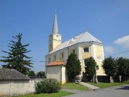 Na návsi se nachází kostel, jehož půdorys je obdélníkový v závěru se zkosenými hranami a v levé stěně díky sakristii se dvěma čtvercovými výběžky. Věž je čtyřboká, třípatrová, s ciferníky ve vrcholu s jednoramenným křížem. Stěna, v ploše bez oken, má v horní části vytvořeny sluneční hodiny.