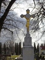 Na hřbitově se nachází kříž s podstavcem z bílého mramoru. Korpus i destička jsou pozlaceny. V podstavci je uveden autor. Ornamenty jsou i na kříži s výjimkou přední strany. Text na druhém stupni vepředu je zlacen, vše ostatní je vyvedeno v černé barvě.