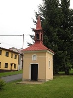 Zděná kaplička se zvonem ve věžičce stojí na návsi.