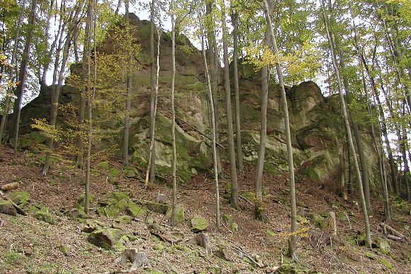 Skalisko opředené pověstmi se nachází v západním úbočí Holého kopce nad údolím horního toku Dlouhé řeky. Vystupuje z úbočí Holého kopce ukloněnou plotnovitou jižní stěnou a strmou až 20 m vysokou severní stěnou. V severní stěně je popsáno celkem 6 horolezeckých tras.