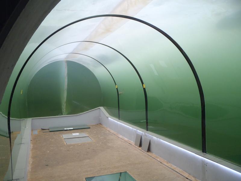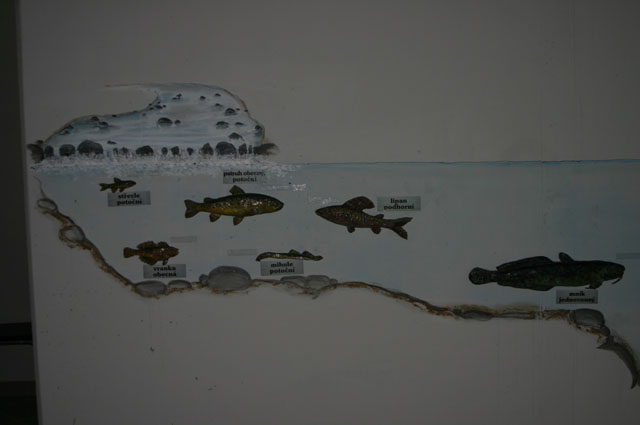 Návštěvníci zde mají možnost sledovat život pod vodní hladinou přes prosklenou stěnu, dále ve velké tůni s chladnomilnými rybami, např. pstruhy, mníky, apod., kde v prvním podzemním patře vstoupí průhledným 8m dlouhým tunelem přímo do světa pod vodou. Jedná se o nejdelší prosklený tunel ve volné přírodě v Evropě.