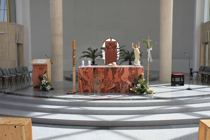 Stavba kostela začala v roce 2002, autorem je slovinský architekt Ivo Goropevšek. Nosnou část hlavní lodi tvoří 12 sloupů, které symbolizují 12 apoštolů. Na to navazuje střecha ve tvaru čtvrtkruhového oblouku připomínající baldachýn a symbolizující lehkost - vznášení. Ze strany od Památníku Velké Moravy se nachází vchod a čelní strana kostela. Tu tvoří dvě věže mírně skloněné směrem k vlastní stavbě, představující 2 slovanské věrozvěsty sv. Cyrila a Metoděje. Věže jsou uprostřed propojeny křížem, jehož tvar vychází z nálezu při archeologickém průzkumu této lokality. Hlavní loď má navrženo venkovní opláštění ze skla. Sklo symbolizuje pronikání paprsků a otevřenost církve. V suterénu vzniklém pod hlavní lodí se nachází sál pro společenské využití, různé kulturní i vzdělávací akce ve městě. V přední části je liturgický prostor s oltářem a svatostánkem, který je navržen jako společný pro kostel a zimní kapli, která je umístěna za liturgickým prostorem z východní strany a je zasvěcena Panně Marii. Materiály, které byly při stavbě použity - tradiční pohledový železobeton, zděné konstrukce a dřevěný či kamenný obklad.