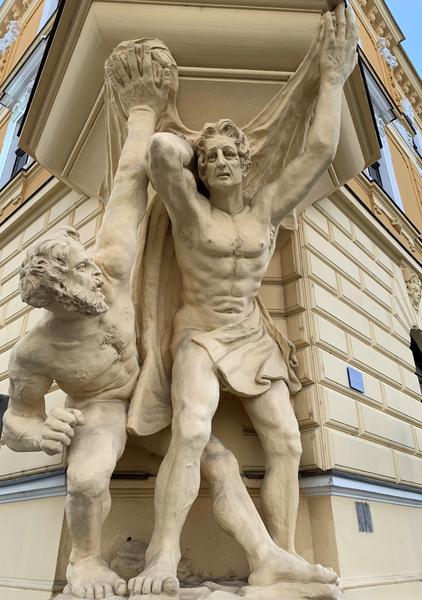 Objekt vystavěl roku 1900 Josef Schaniak ml. pro svou dceru Maxmilianu Jarošovou-Schaniakovou, později provdanou za MUDr. Roberta Nesvedu. Dům je nápadný sousoším dvou atlantů nesoucích nárožní balkon, nedávno zrestaurované figury vytvořil uherskohradišťský sochař Vlastimil Amort. Interiéry utrpěly přestavbami, nejzásadnější byla v letech 1981-1982, takže interiéry už nepřipomínají honosné měšťanské prostory. K předchozím úpravám došlo ještě v letech 1935-1936 a pak 1941, kdy byl dům upraven pro potřeby německého žákovského domova. K poslední renovaci došlo v roce 2014, kdy byla opravována fasáda a její výzdoba.