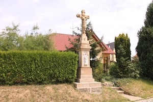 Kamenný kříž s textem "Pojďte ke Mne, kteří ve světě v slzách těžce pracujete, pojďte, Já vás občerstvím" je signovaný sochařem a kameníkem Františkem Zbořilem ze Starého Města. Autor vytvářel v 1. polovině 20. století památníky a pomníky i pro okolní obce (Nedakonice, Huštěnovice).
