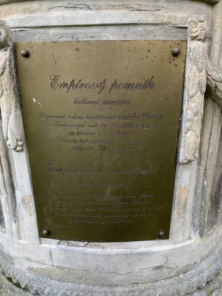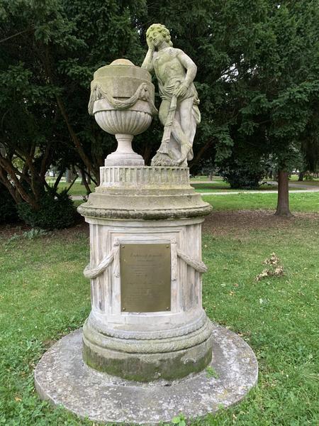 Pomník byl původně umístěn na hřbitově v Mařaticích. Do Smetanových sadů byl přenesen v roce 1935. Na elipsovité jednostupňové základně oválný sokl nahoře i dole ořímsovaný. Stěny soklu členěny kanelováním. Na přední i zadní straně soklu obdélné pravoúhlé rámy a nápisy dnes špatně čitelnými. Boční strany zdobeny vavřínovými festony. Sokl ukončen vylomenou profilovanou timsou, na ni kanelovaná podnož elipsovitého tvaru s empirovou vázou s festony, uzavřenou do půlkruhu tvarovaným víkem. Po levé straně vázy stojí chlapecká postava s bederní rouškou kolem boku. Pravá volná noha pokrčena. Pravá ruka opřena loktem o vázu, hlava skloněna v dlani. Levice před tělem drží hořící pochodeň před pravou nohou plamenem dolů. Materiál: piskovec, litina. Na pomníku je vytesán dnes již skoro nečitelný nápis německo - český. Laner.....deu Vaterlieb Ach u schnellu sind su.