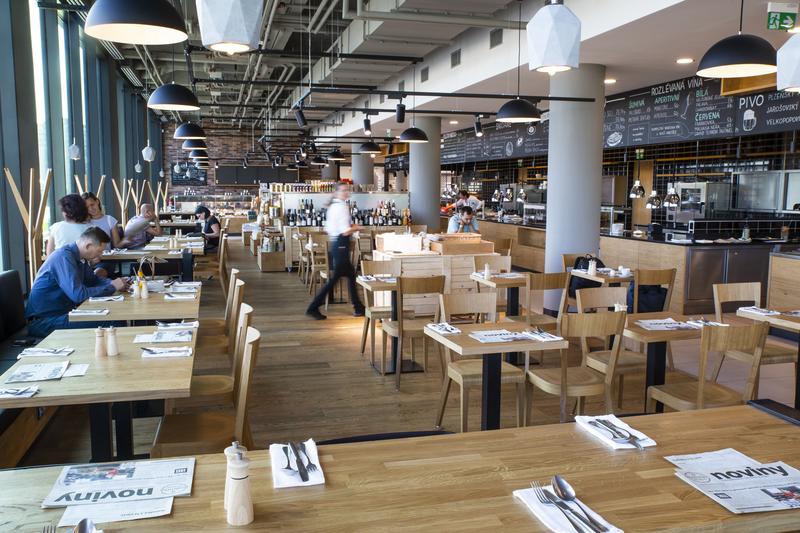 Nová dominanta náměstí Práce nahradila původní prodejní pasáž Tržnice. Po dokončení stavby v roce 1931 před Vánocemi se v Obchodním domě Baťa otevřely prodejny zboží a to hned ve čtyřech etážích. V páté až sedmé se nacházely jídelny se samoobsluhou, v nejvyšších patrech byly vybudovány sklady. Samotný prodej byl uskutečňován většinou v tehdy revoluční podobě samoobsluh a ve volných výběrech. K supermoderním novinkám ve vybavení objektu patřilo od roku 1934 pohyblivé schodiště, které spojovalo přízemí s prvním patrem a budilo tehdy úžas zákazníků. Byly to vůbec první „jezdící schody“ v tehdejším Československu. Právě v té době stál ve vedení obchodního domu dvacetiletý Tomáš Baťa junior, který se zde každodenní praxí důkladně seznamoval s touto součástí baťovských aktivit.