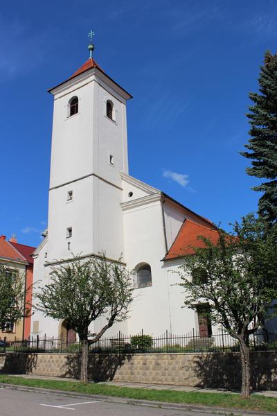 Původní farní kostel sv. Jana Křtitele je dvojlodní stavba s polygonálním závěrem kněžiště a čtyřbokou věží v západním průčelí. Tato nejstarší dochovaná gotická sakrální stavba ve městě byla pozměněna renesanční přístavbou věže (1589) a raně barokní přestavbou v 17. století. Loď v obvodovém zdivu ze 14. století. Pozdně gotický presbytář byl zhotoven Pavlem Sekaným v roce 1494, stavitelem renesanční věže z roku 1589 byl Mikuláš Lorek. Klenby lodi jsou z doby raně barokní přestavby datované rokem 1667. Roku 1733 byla farní správa přenesena k novému kostelu na náměstí a v roce 1784 byl kostel odsvěcen a přeměněn na skladiště. Od roku 1898 byla boční loď užívána jako Krajinské muzeum a v roce 1920 byl kostel převzat a rekonstruován církví Československou husitskou.