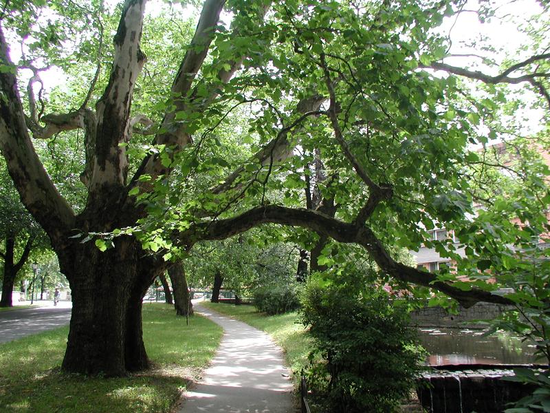 Platanovou alej dal na nábřeží řeky Bystřičky v polovině 19. století vysadit tehdejší majitel panství Olivier svobodný pán z Loudonu, inspirován radou rusavského evangelického faráře Daniela Slobody. Semena platanů javorolistých přivezl z Itálie. Roku 1980 byla alej vyhlášena skupinou památných stromů.
