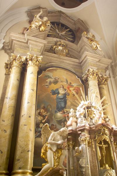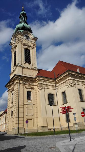 Kostel Neposkvrněného početí Panny Marie je považován za vynikající barokní stavbu. Byl vystavěn podle plánů architekta Domenica Martinelliho. Jeho financování přislíbil dokonce sám Maxmilián Oldřich z Kounic−Rietbergu. Na impozantním průčelí kostela vyniká zejména bohatě zdobený půlkruhový portál, na jehož vrcholu najdeme i rodový erb Kouniců. Kostel je trojlodní orientovaná stavba s čtyřbokou věží nad kněžištěm. Typická pilířová hala, původně bez věže, je pozoruhodná hned v několika ohledech. Především je z urbanistických důvodů obrácena monumentálním průčelím k východu a vytváří tak s radnicí, která byla upravena zhruba ve stejné době, dvojici symbolů - správy církevní a světské.