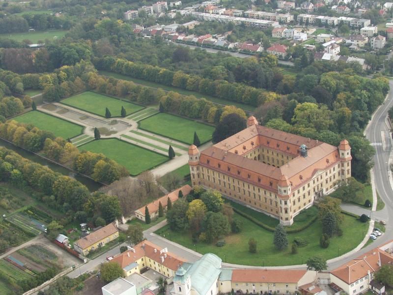 V první polovině 18. století vznikl kolem zámku rozsáhlý zámecký park francouzského typu o celkové rozloze 62 ha. Jeho součástí je systém vodních kanálů ve tvaru Neptunova trojzubce a Růžová zahrada s pomníkem F. X. Richtera. Zámecká zahrada je veřejnosti přístupná.