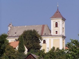Kostel byl postaven v letech 1713–16 ve stylu smíšeného renesančního a raně barokního slohu. Ke kostelu se váže pověst o zakopaných zlatých kačenách, které před svou smrtí ukryl zakladatel zdejšího kostela páter Jaroš a tajných chodbách, vedoucích prý až k hradu Buchlov.