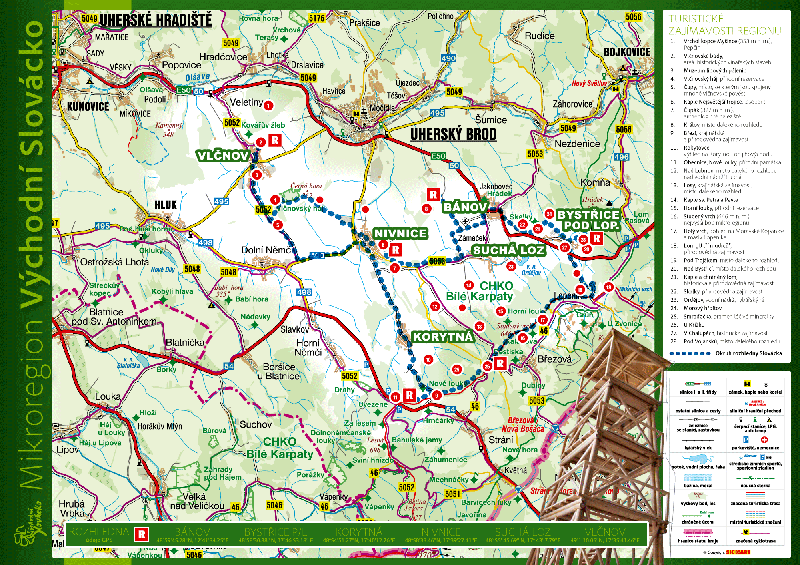 Rozhledna nabízí výhled na Strání, Bílé Karpaty,Velkou Javořinu, Jelenec, Mikulčin vrch, Malý a Velký Lopeník i Troják.