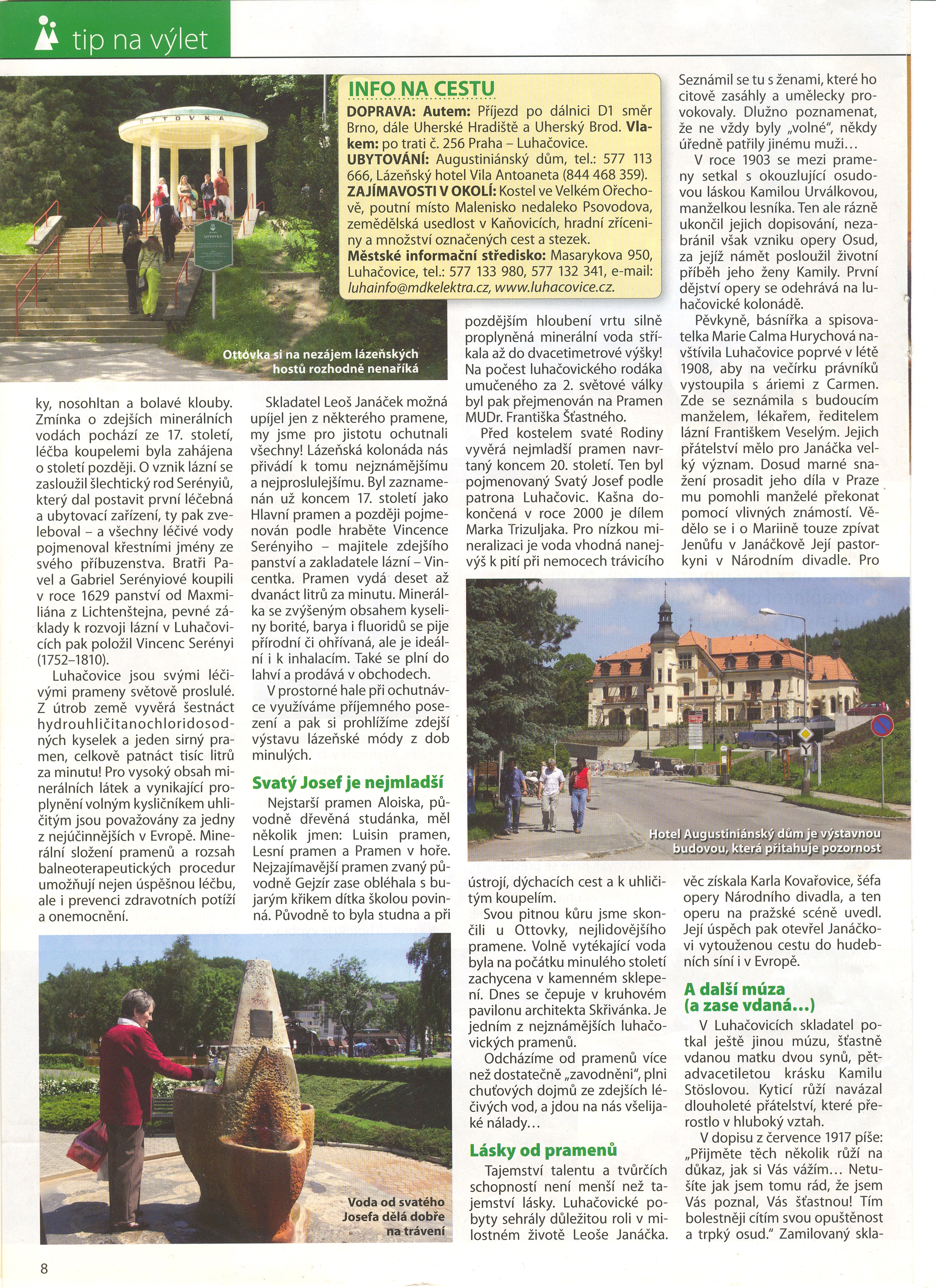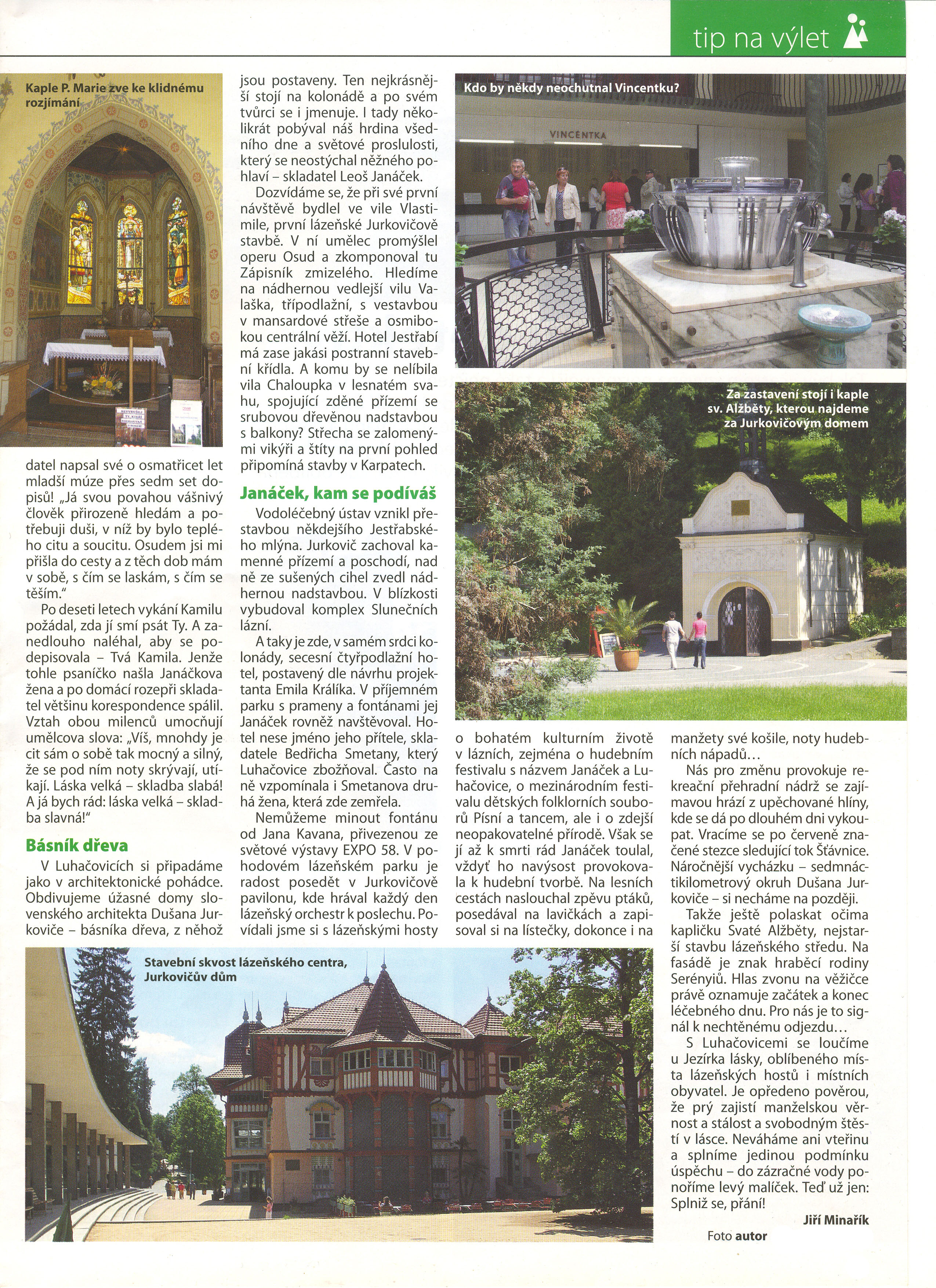 Nádherně tyto věci popsal pan Jiří Minařík a za neotřelý kompilát turistické nabídky největších moravských lázní s přihlédnutím na přítomnost osobnosti světové hudby Leoše Janáčka a s mimořádnou "gastronomickou" nabídkou luhačovických léčivých pramenů obdržel cenu Czech Travel Press 2010.