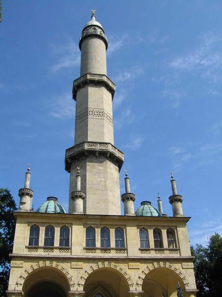 Park, který je veřejnosti přístupný už přes 200 let, dotváří množství tzv. saletů – romantických staveb, často impozantních rozměrů. Minaret se stal stejně známým symbolem Lednice jako zdejší zámek. Kromě minaretu lze v okolí zámku spatřit také římský akvadukt, orientální vodárnu, klasicistní Lovecký zámeček, umělou zříceninu Janohradu (patří už k sousednímu Podívínu, stejně jako Obelisk). Nezvyklý úhel pohledu na park a jeho památky nabízí projížďka po Zámecké Dyji.