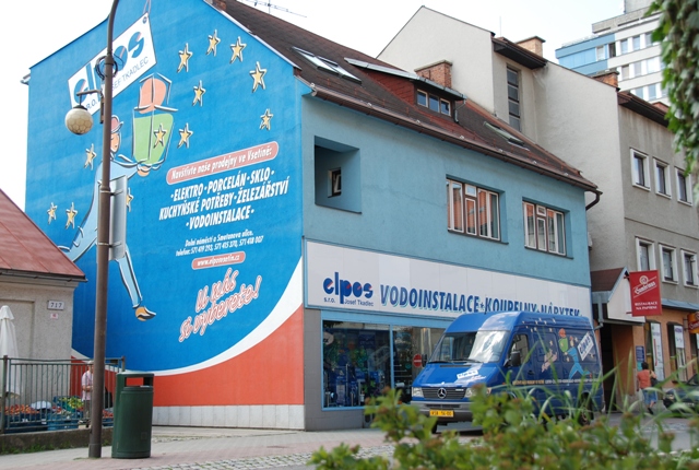 Obchody s elektronikou, domácí potřeby, želežářství, vodoinstalační potřeby, osvětlení - Dolní náměstí, Smetanova ulice
