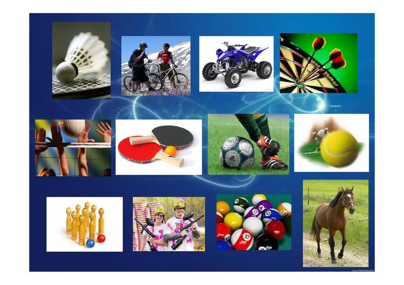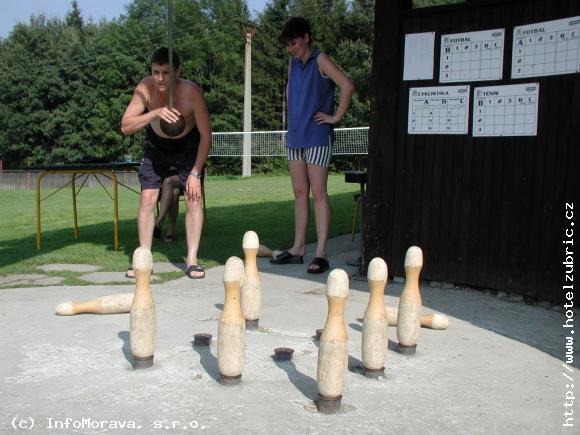 tenisové kurty, ruské kuželky, stolní tenis, volejbal, malé fotbalové hřiště, badminton, horská kola, kulečník, biliard, šipky, stolní fotbal, sauna, masáže