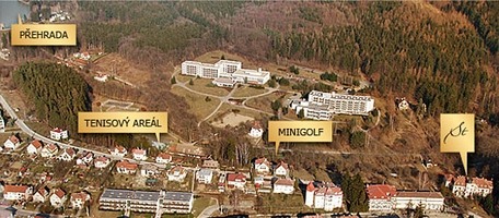 kuželna, minigolf, půjčovna sportovních potřeb a vybavení, stolní tenis, tenisový kurt, tenisová hala