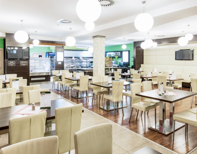 Restaurace nabízí poctivé obědy v naší samoobslužné restauraci. Nabízíme výtečné pokrmy připravované vždy z čerstvých surovin. Vaříme tradiční česká jídla i oblíbené evropské receptury. Každý den si můžete vybrat výhodné polední obědové menu z naší pestré nabídky. Denně nabízíme specialitu naší kuchyně – svíčkovou na smetaně. Pro milovníky ryb je v naší stálé nabídce poledního menu grilovaný losos s anglickou zeleninou.