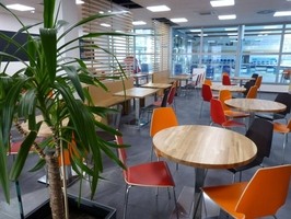 Volně přístupná restaurace nabízí po celý den teplé i studené pokrmy, v rámci poledního menu i jídla regionální kuchyně, minutky, saláty, kávu a dezerty, zmrzlinu, nealko nápoje a točené pivo.