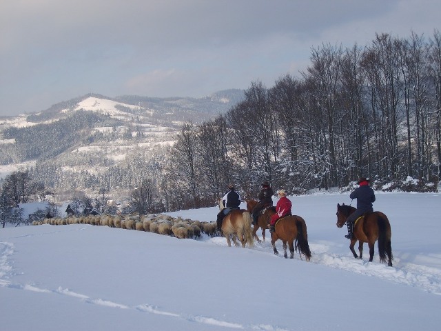 Nabízíme vyjížďky na koních - delší putování podhůřím hřebeny Javorníků, Vsetínských vrchů: