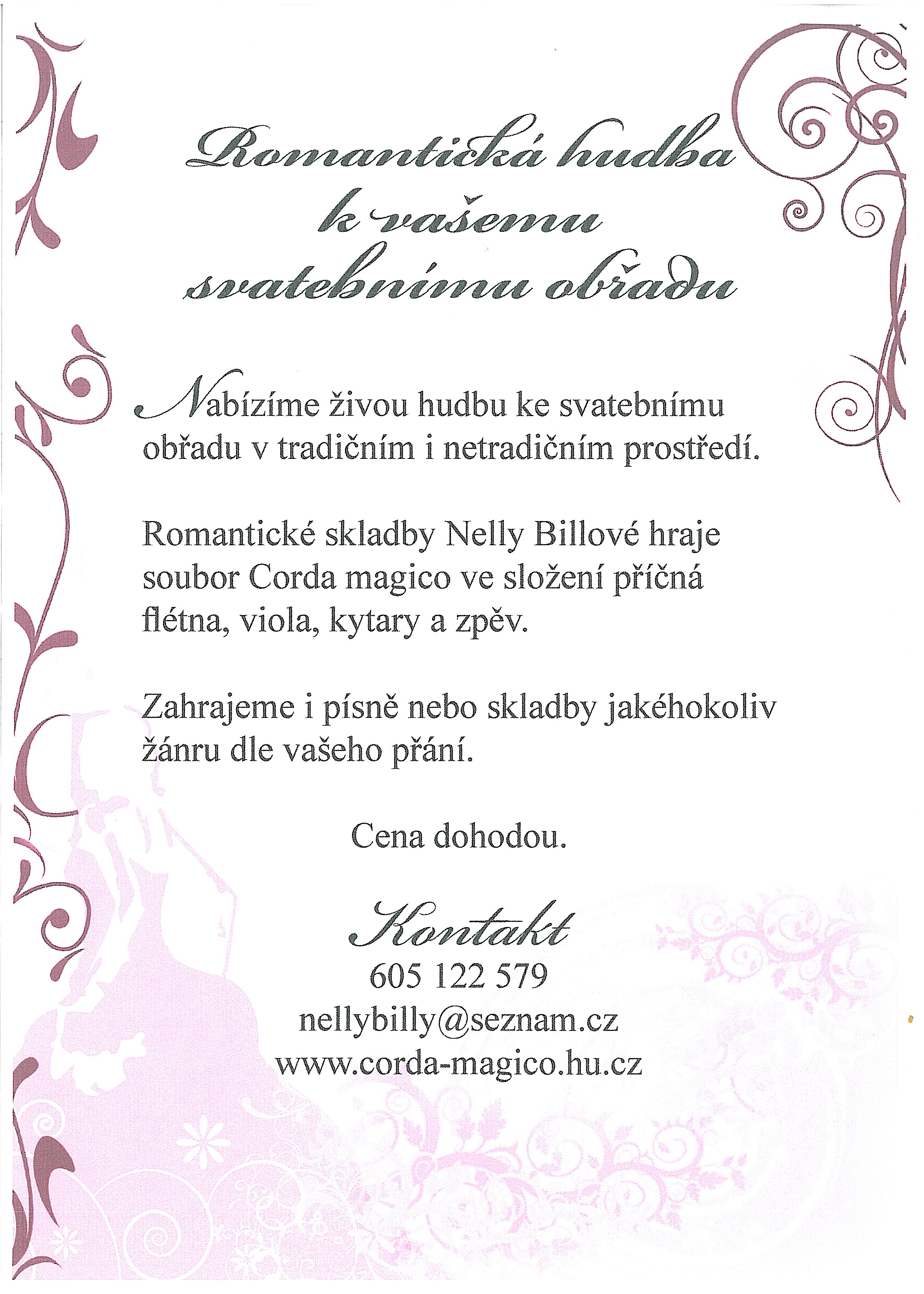 Komorní soubor Corda magico hraje převážně skladby své zakladatelky Nelly Billové. Základ souboru tvoří učitelky Základní umělecké školy F.X.Richtera v Holešově - kytaristky Nelly Billová, Danuše Pospíšilová, flétnistka Sylvia Šimečková a Lucie Kolaříková (viola). V současné době s námi spolupracuje Iva Svobodová (zpěv), prof.Zdeňka Pimková (violoncello) a Miroslava Kollerová (djembe).