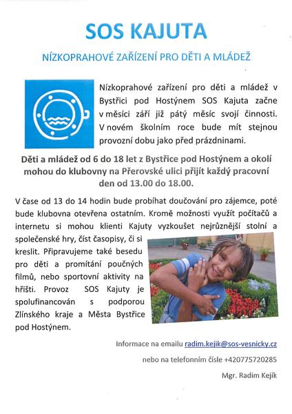 Nízkoprahové zařízení pro děti a mládež SOS KAJUTA nabízí programy pro všechny příchozí děti ohrožené jakoukoliv formou negativních vlivů vnějšího prostředí i rodiny. Naším cílem je vyvést děti z rizikového prostředí formou vzdělávání, zvyšování jejich sociálních dovedností a smysluplným využitím volného času. Jednou z priorit je motivace k dosahování lepších školních výsledků a předcházení jejich sociálnímu vyloučení.