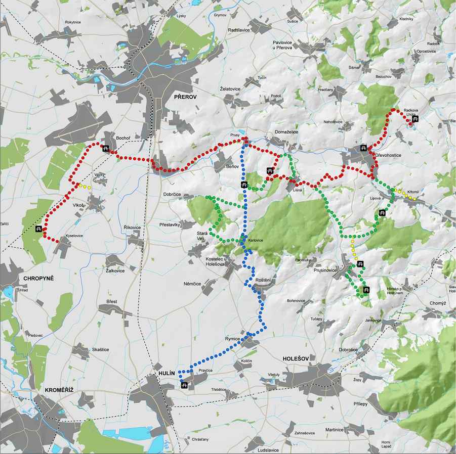 Nové hipostezky na území MAS – Partnerství Moštěnka a MAS Hříběcí hory byly vybudované díky projektu spolupráce Po formanských stezkách – křížem krážem Moštěnkou a Hříběcími horami, který byl realizovaný za finanční podpory EU z prostředků Programu rozvoje venkova LEADER. hipostezky vedou převážně po polních a lesních cestách. Jsou vyznačeny téměř 400 směrovek a vzniklo na nich 45 malých a 3 větší odpočívky, 2 krytá a 42 nekrytých úvazišť, u Těšánek replika vodního mlýna a patnáctimetrová rozhledna a jsou zde umístěny informační mapy a tabule. Již existující hipostezky na Vyškovsku se tak rozšíří o oblast Chřibů, Buchlovska a jižní Hané. S celkovou délkou 230 kilometrů je tato hipotrasa nejdelší na Moravě.