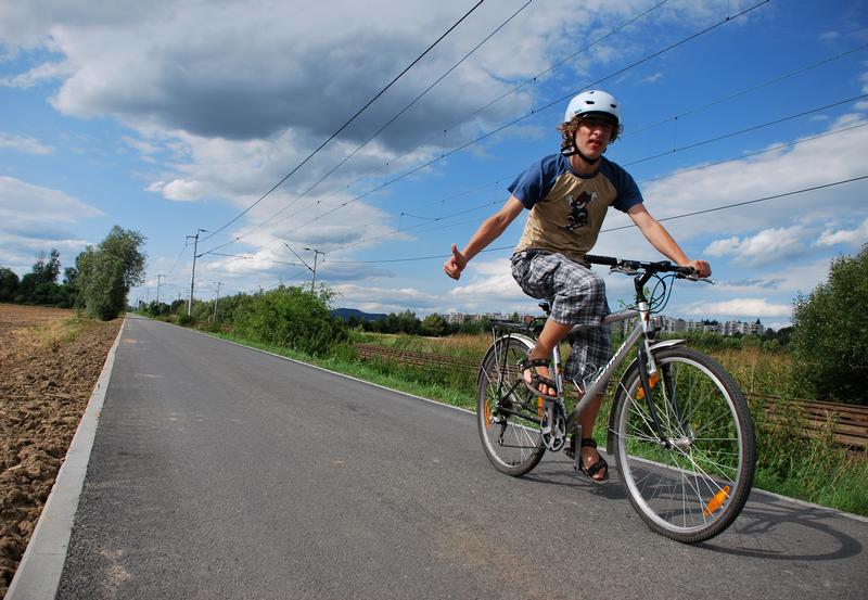 Od místní části Hrachovec se vlní po levém břehu řeky Bečvy k městskému koupališti. Zde kříží řeku po nové lávce a dále pokračuje po pravém břehu po stávající komunikaci kolem prvního splavu. U něj cyklista může využít jedno z několika odpočivadel.