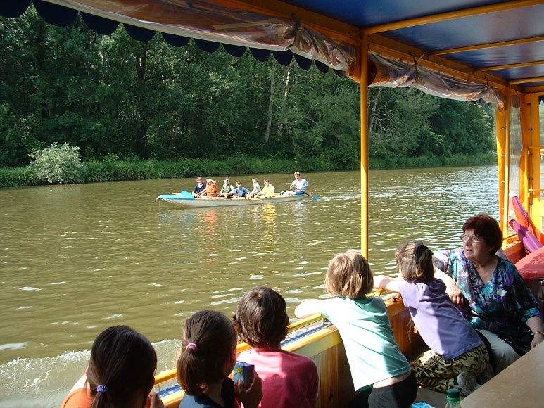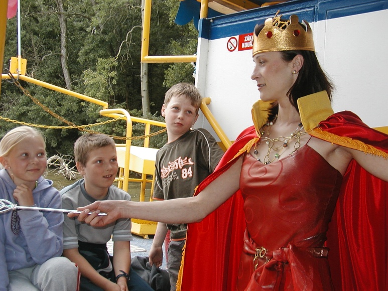 Na palubě lodi je s cestujícími po celou dobu plavby královna Konstancie, která přichází v doprovodu svých dvořanů a na lodi převáží královský poklad. Tento poklad musí posádka ochránit před piráty, kteří napadnou loď, vystoupí na palubu a budou se chtít královského pokladu zmocnit. Ale jak už to v pohádkách bývá, dobro vítězí nad zlem. Piráti jsou přemoženi a prchají z lodi. Poklad je zachráněn a spravedlivě rozdělen mezi posádku. Královna Konstancie představí v průběhu plavby své královské území, bohaté na pohádkové bytosti: Perníkovou chaloupku, Ježibabu, Plaváčka, Říční vílu, Vodníka … atd.
