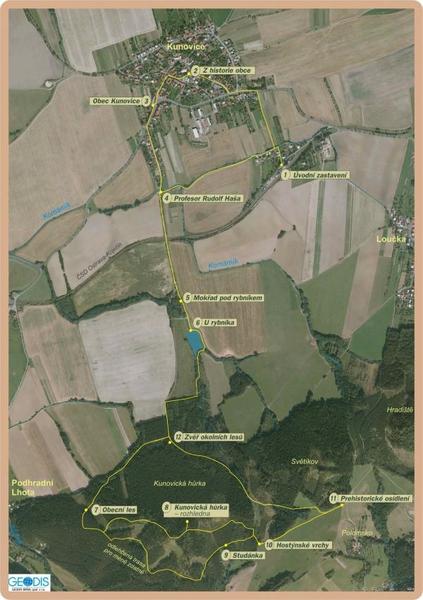 Naučná stezka pojmenovaná po Rudolfu Hašovi se dvanácti zastaveními byla vybudována v roce 2010 a seznamuje návštěvníky s obcí Kunovice ležící na úpatí Hostýnských vrchů. Stezka začíná u vlakového nádraží Kunovice-Loučka, pokračuje přes obec Kunovice a dále vede malebnou cestičkou mezi poli i lány, kolem rybníka. Následuje strmý výstup na vrchol Kunovické hůrky. Na vrcholku se nachází rozhledna, z níž se naskýtá krásný výhled na malebné panorama. Méně zdatní turisté mohou rozhlednu obejít vyznačenou zkratkou. Trasa pokračuje loukami a pastvinami do míst zaniklé středověké vsi Polomsko. Zde se traduje původ vesnice Kunovice. Lesní cesta zavede turistu k poslednímu zastavení k myslivecké chatě.