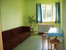 Chata má 4 pokoje 4 – 5 lůžkové, každý z pokojů disponuje vlastní kuchyňkou se základním vybavením (lednice, dvouplotýnkový vařič, rychlovarná konvice, mikrovlnná trouba, základní nádobí, teplá voda ).WC a sprchový kout je na patře, vždy pro dva pokoje společné. Dále je k dispozici velká společenská místnost, v suterénu se nachází místnost s příjemným posezením u krbu. Úschova kol ve vnitřních prostorách je možná. Možnost parkování přímo u chaty. Cena 2200 Kč/celá chata/noc.