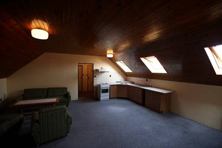 Ubytování se nachází ve středu obce, v podkroví restauračního zařízení, kde je možné zajít na snídani, objednat si oběd, popř. zajít na večeři. Na zahrádce se nachází minigolf a ruské kuželky. V areále se dále nachází tenisový kurt, fotbalové hřiště a dětské hřiště. Byt má vlastní sociální zařízení a zařízenou kuchyň. Lze ubytovat až 8 osob. Obcí prochází řada turistických tras, cyklotras a hippotras. Cena ubytování po dohodě.