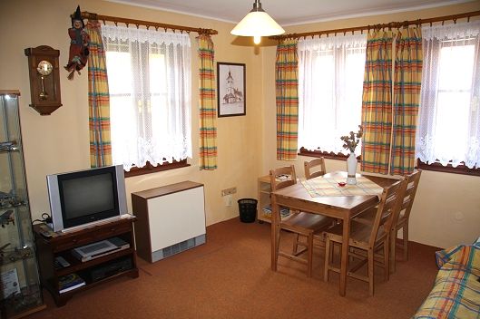 Vybavená kuchyně, barevná televize, videorekordér, venkovní gril, parkoviště