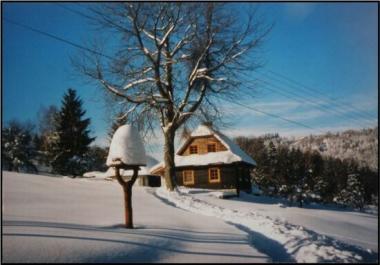 6 lůžek (4 + 2) ve 2 pokojích (+1 přistýlka na rozkládacím gauči); dále k dispozici 2 kvalitní matrace s peřinami a povlečením; plně vybavená kuchyně s kachlovými kamny a myčkou; obývací místnost s rozkládacím gaučem, krbovými kamny a TV; koupelna se sprchovým koutem a toaletou; parkování 40m od chalupy (zima), přímo u chalupy (léto)